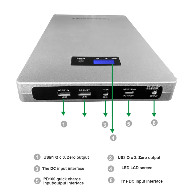 Products >> 5V-12V-24V DC PD Laptop power bank >>